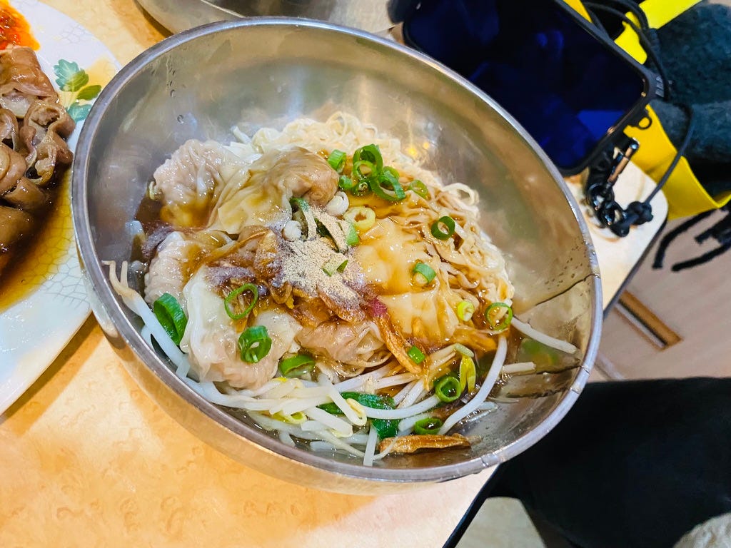 巷弄間,凡人的鼎泰豐,牛肉湯清爽湯頭佳,搭配排骨炒飯,麻辣炒手和乾麵攪拌,我愛!