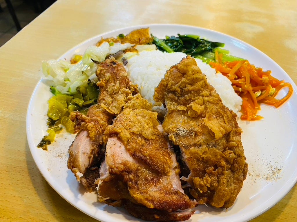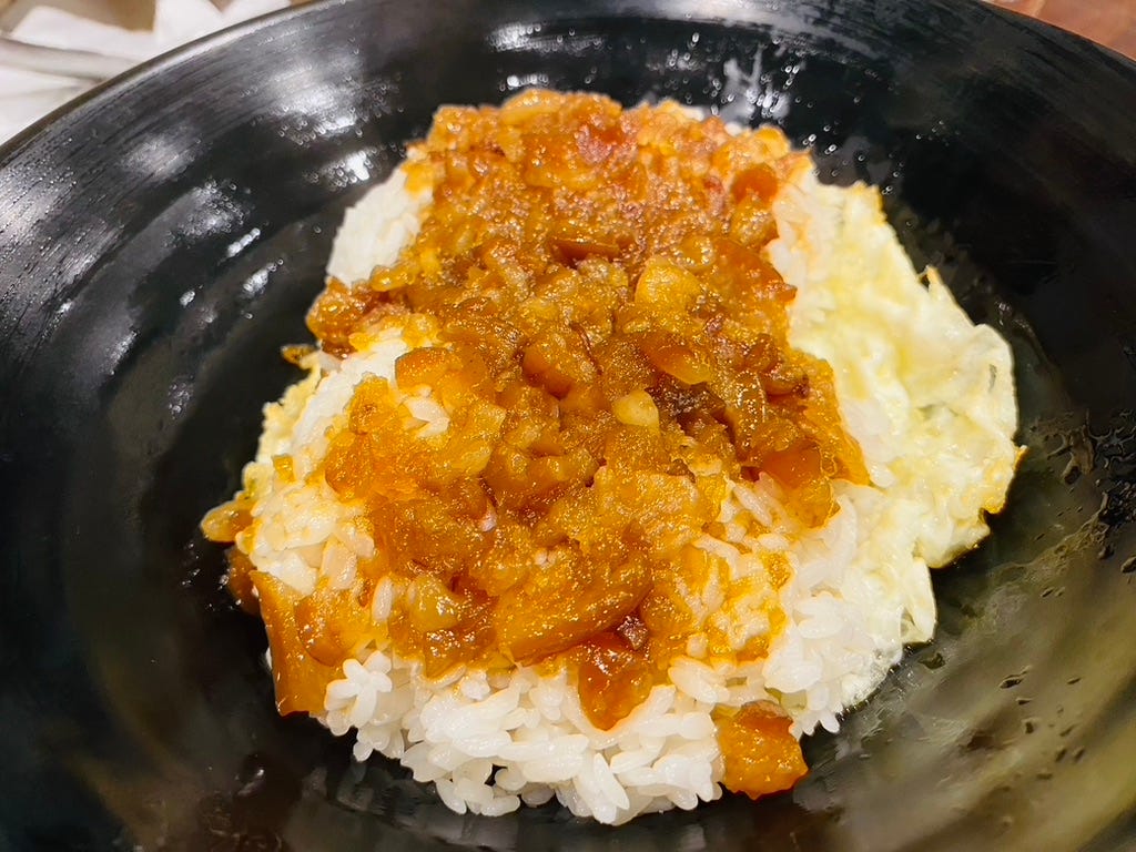 必點中風2.0滷肉飯+荷包蛋。老闆不太聊天,很有個性,指使著大家乖乖排隊。老派都是豬皮的滷肉飯,豬油香黏著嘴,是大學和社區人的巷弄味。